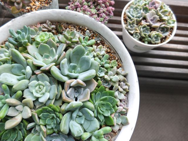 1か月前に挿した「ごちゃ植え」大・小共に根付いた模様。