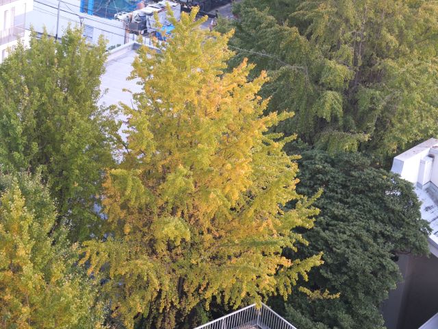 家から見えるところにあるイチョウが黄色くなり始めました。