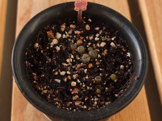 緑色していた「リトープス実生」は茶色くなって