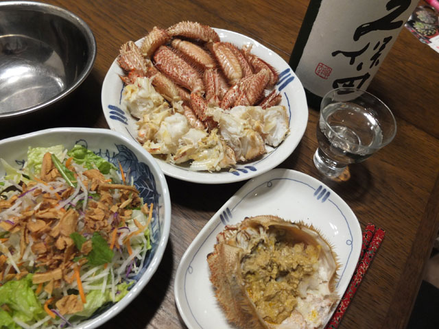 今晩は 今イチ食欲が無かったけれど「毛ガニ」を解凍しておいたので