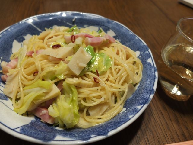 晩御飯は 毎年恒例の 春キャベツとタケノコのすぱげっち。
