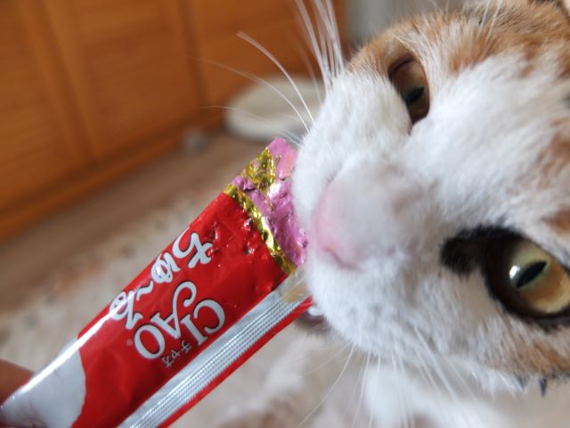 お約束の ご褒美の「ちゅ〜る」を上げ始めてすぐに