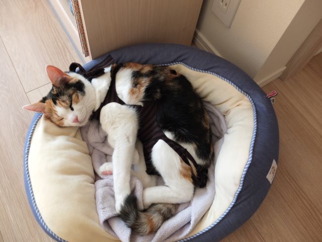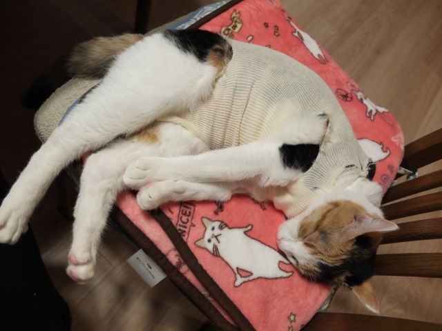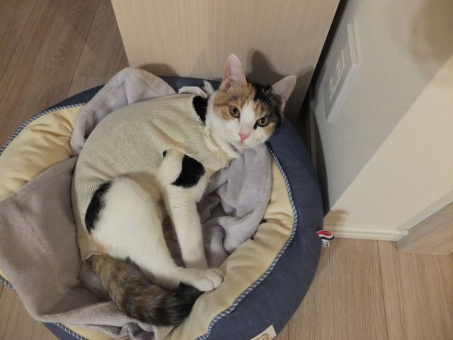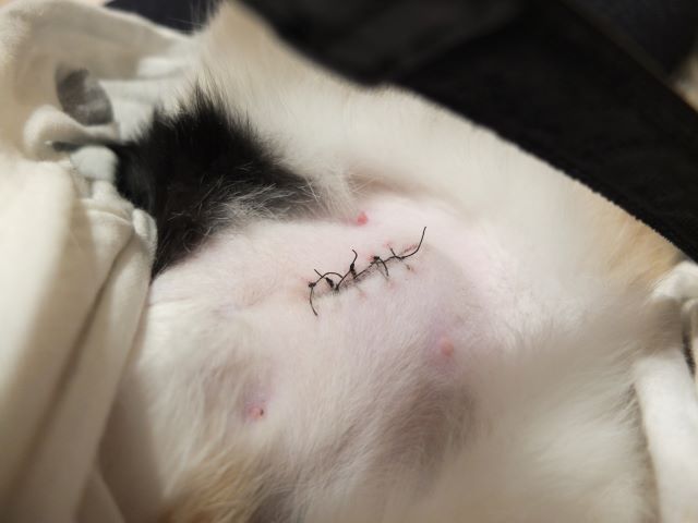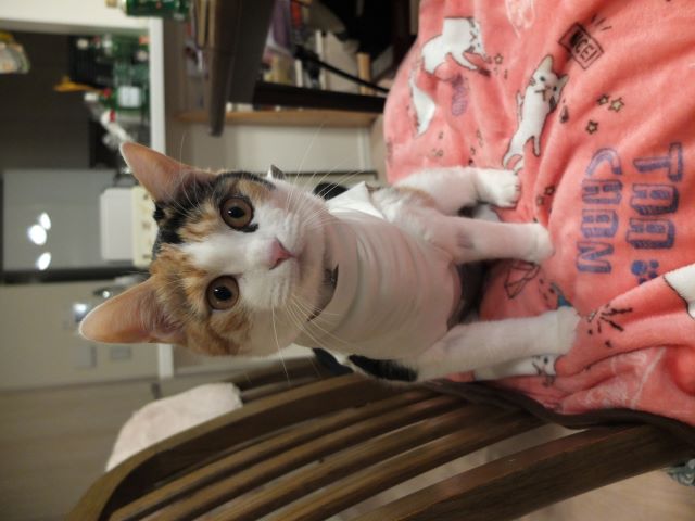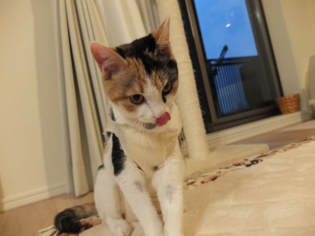 そして あっという間に 手術痕の絆創膏は ピッと自分で剥がしてしまいましたとさ...( = =) トオイメ