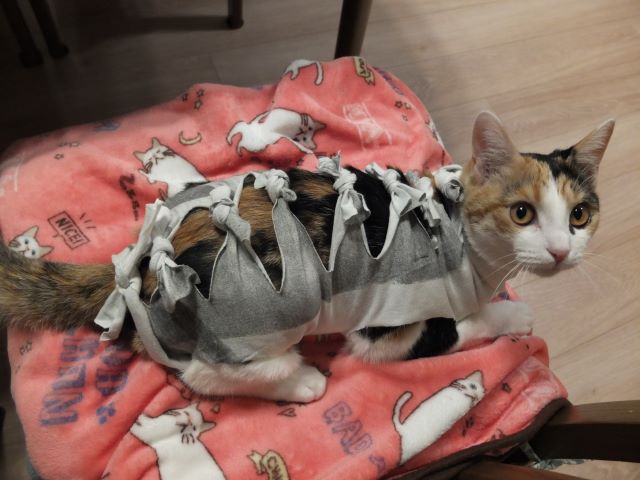 明日まで抗生物質を飲んで やっと脱がせることができます。
