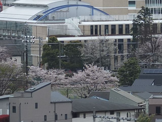 窓から見える桜は どっちを見ても まだ満開にはなっていない感じ。